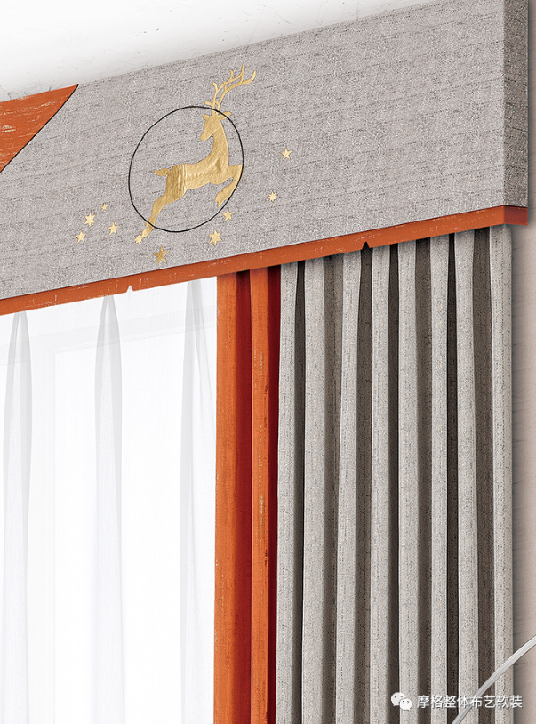 帘头上的鹿寓意着健康、爱情。在古代它被视为神物,人们认为它能带来幸福和长寿。鹿还象征富裕。鹿,谐音“禄”,取高官厚禄之意。